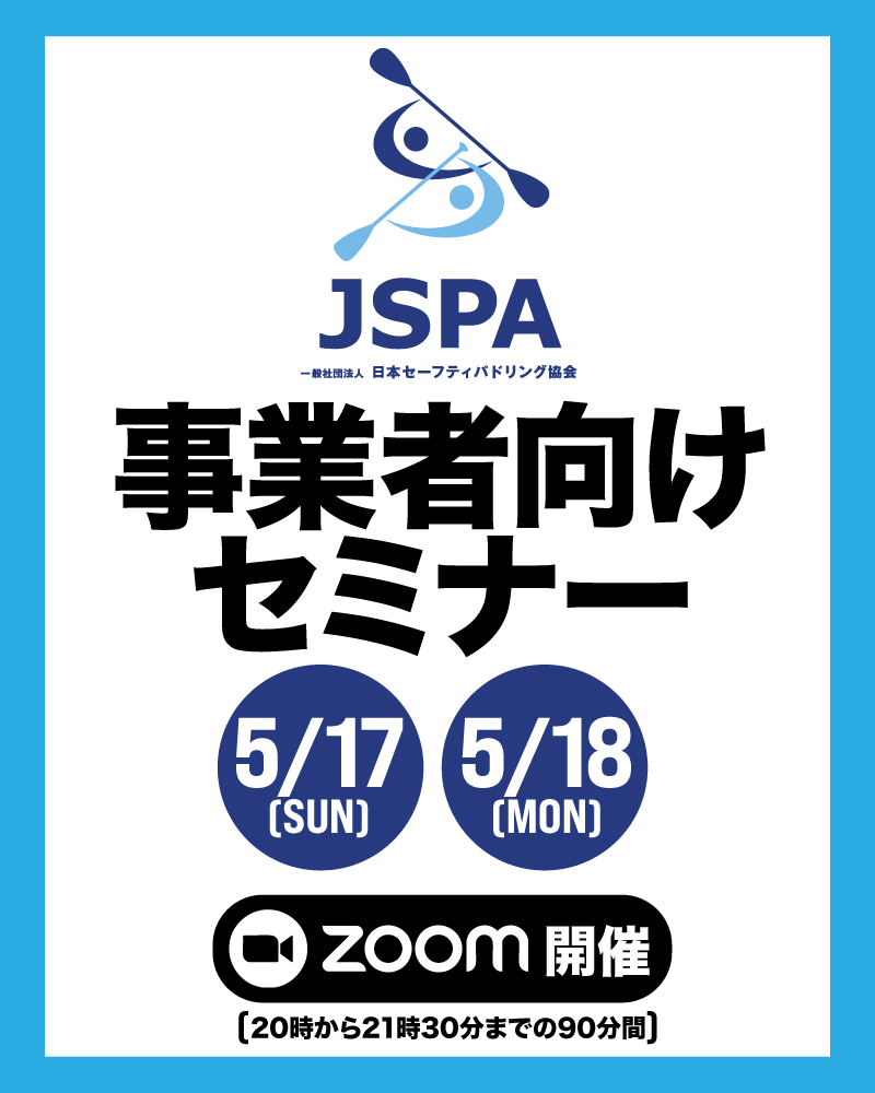 私も加盟している日本セーフティパドリング協会(JSPA)で、パドリングスクールやパドルスポーツガイド業を運営している方、パドルスポーツで事業を始めたいと思っている方、そしてただただJSPAという団体に興味がある方に向けたオンラインセミナーが開催されます。