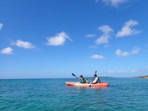 南西5m、波1.5m、晴れ、気温31℃、水温30℃ 島日和の半日シーカヤック・シュノーケルプライベートツアーは1才6か月の未就学児~75才まで参加可能です。 島日和は日本セーフティパドリング協会(JSPA)のA公認スクー […]